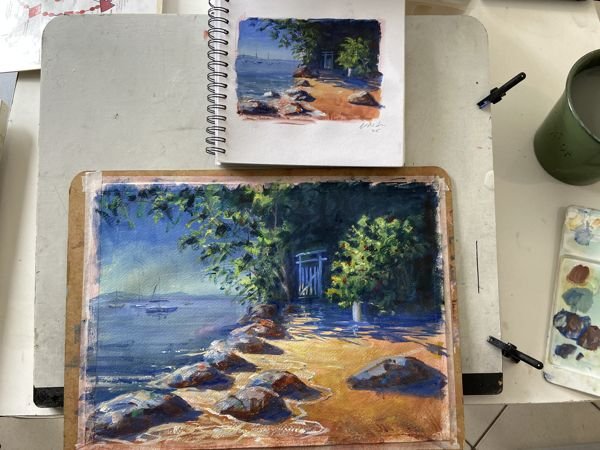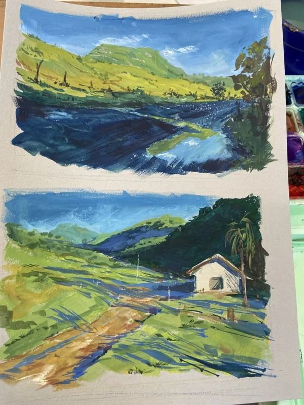 A técnica da pintura a guache reúne o melhor da pintura a base de água, como a aquarela, e o melhor das técnicas opacas, que permitem cobertura, como o óleo. Sendo assim um ótimo material para que quer iniciar na pintura ao avançar em sua linguagem. Retratos, paisagem, ilustração, concept art, pintura plein air, todos os temas se aplicam muito bem com guache.